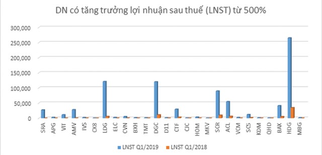 Ở nhóm DN có doanh thu cao hàng trăm tỷ đồng, điểm tích cực là nhiều DN tăng trưởng nhờ hoạt động kinh doanh cốt lõi. Đơn cử, CTCP Tập đoàn Hà Đô (HDG) đạt 901 tỷ đồng doanh thu trong quý I/2019, tăng mạnh so với con số 226 tỷ đồng của cùng kỳ 2018, chủ yếu đến từ doanh thu bất động sản và thủy điện, góp phần mang lại lợi nhuận 265 tỷ đồng, gấp 8 lần cùng kỳ.