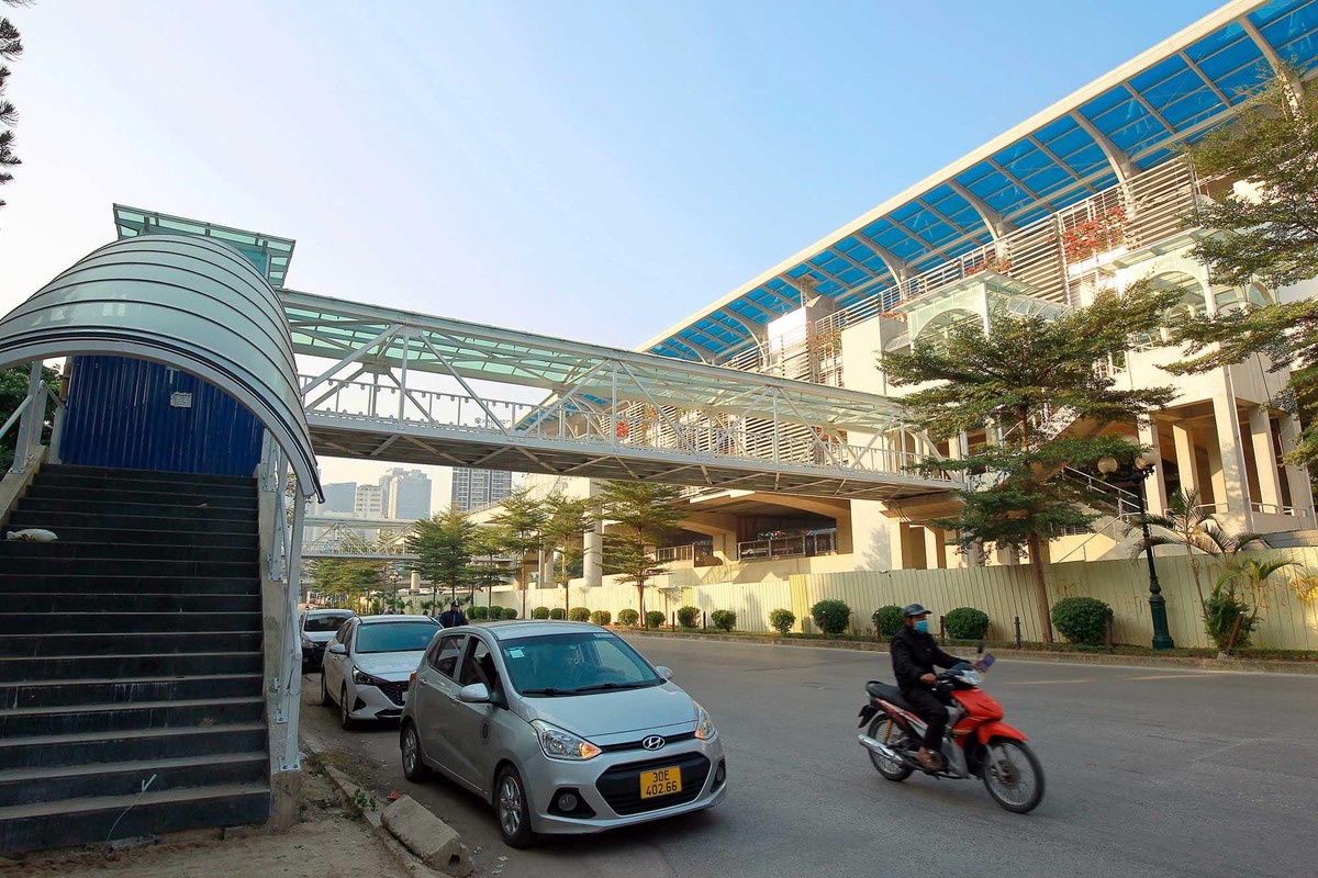 Hình ảnh đường sắt Nhổn - ga Hà Nội đoạn bắt đầu đi ngầm trên đường Kim Mã. Hiện nhà thầu đangtổ chức đào hở phần đường dẫn xuống ga ngầm