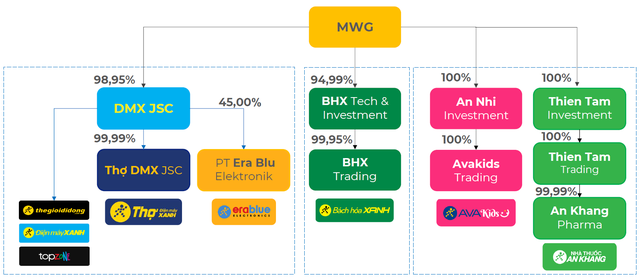 Được biết, DMX là một trong ba nhánh kinh doanh chuyên biệt của Tập đoàn mẹ - Thế giới Di động (MWG - sàn HOSE), được định vị là hệ sinh thái bán lẻ điện thoại - điện máy, bao gồm các chuỗi bán lẻ cốt lõi (Thế giới Di động, Điện máy Xanh, TopZone) và các trụ cột tăng trưởng mới là dịch vụ Thợ DMX và liên doanh EraBlue tại Indonesia.