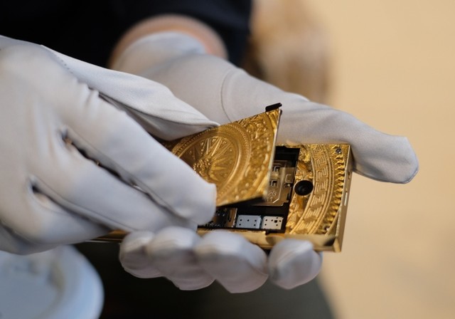 Điện thoại mạ vàng, họa tiết Đông Sơn giá 150 triệu đồng