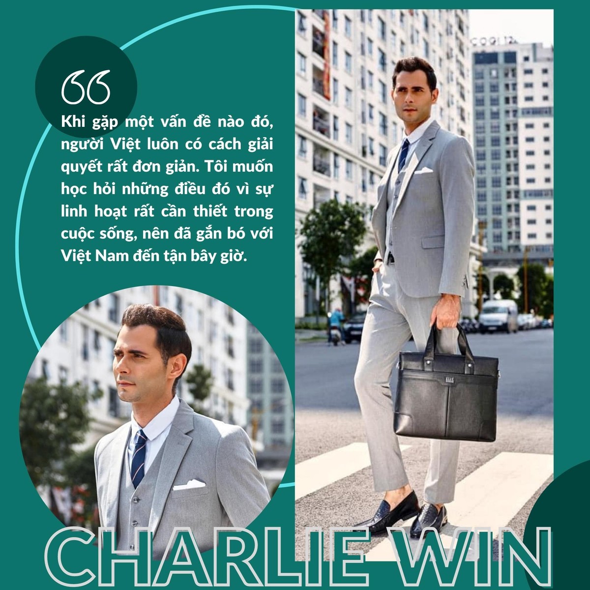 Charlie Win chia sẻ, không phải cảnh quan thiên nhiên, ẩm thực hay kiến trúc, mà chính sự khâm phục về cách ứng xử linh hoạt, khéo léo trong giải quyết các tình huống, vấn đề của người Việt Nam đã khiến anh muốn học hỏi và quyết định lập nghiệp, sinh sống lâu dài tại “mảnh đất hình chữ S”.