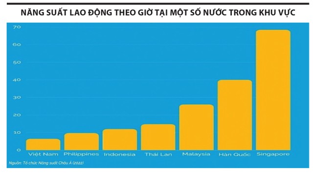 Trước hết, năng suất lao động của Việt Nam vẫn thấp so với các nước trong khu vực. Theo Báo cáo Năng suất lao động 2023, năng suất lao động của Việt Nam đạt 18.400 USD/người, bằng 40% so với Thái Lan và bằng 15% so với Singapore. Điều này làm giảm khả năng tăng trưởng bền vững, đặc biệt khi nền kinh tế toàn cầu đang gặp nhiều khó khăn.