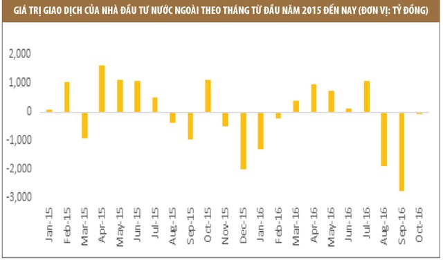 Có thể thấy, sau 2 tháng bán ròng “quyết liệt nhất” tính từ đầu năm 2016 đến nay, khối ngoại đã chuyển về mức hoạt động cân bằng hơn đáng kể trong tháng 10. Nếu kỳ vọng khối ngoại đã chấm dứt chuỗi bán ròng để quay lại trạng thái mua ròng trong thời gian còn lại của năm 2016, khả năng thị trường có thêm những diễn biến khả quan.
