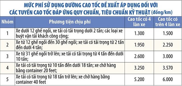 Với phương án mức thu như trên, dự kiến sau khi triển khai thu phí đối với các tuyến cao tốc đang khai thác, số phí thu được có thể đạt 3.210 tỷ đồng/năm; số thu nộp ngân sách nhà nước là 2.850 tỷ đồng/năm. Đây là khoản kinh phí rất quý để Nhà nước có thêm nguồn lực thực hiện công tác bảo trì các tuyến cao tốc hiện hữu, cũng như để đầu tư cho các dự án cao tốc mới.
