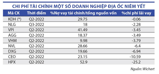 Đáng chú ý, nhóm doanh nghiệp bất động sản nghỉ dưỡng là nhóm tưởng chừng như đang chịu gánh nặng chi phí tài chính rất lớn do yêu cầu cao về nguồn vốn thì đều ở mức thấp, đơn cử CEO Group (mã CEO) hay Danh Khôi (mã NRC) chỉ 1-2%, thậm chí các “ông lớn” như Vinhomes (mã VHM) hay Novaland (mã NVL) cũng chỉ ở mức 3,45% và 6,4%. Các doanh nghiệp khác như Khang Điền (mã KD), Nam Long (mã NLG), DIC Corp (mã DIG), Đất Xanh (mã DXG), Văn Phú - Invest (mã VPI), Hải Phát (mã HPX), An Gia (mã AGG)… có chi phí tài chính phải trả ngắn hạn từ 4-7%.
