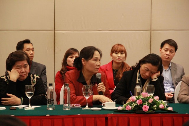 Bà Hà Thị Vinh, Giám đốc Công ty Gốm sứ Quang Vinh, Phó chủ tịch Hiệp hội Gốm sứ Bát Tràng chia sẻ ý kiến