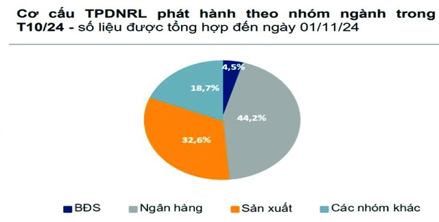 Theo dữ liệu thống kê của Hiệp hội Thị trường trái phiếu Việt Nam (VBMA), từ ngày 4/10 đến cuối năm 2024, tổng giá trị trái phiếu đáo hạn là 78.878 tỷ đồng, trong đó 43,5% thuộc nhóm bất động sản với khoảng 34.317 tỷ đồng.