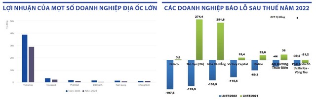 Kết quả kinh doanh năm 2022 được các doanh nghiệp địa ốc công bố cho thấy, từ những doanh nghiệp lớn như Vinhomes (mã VHM), Novaland (mã NVL)… tới những doanh nghiệp quy mô nhỏ hơn như Phát Đạt (mã PDR), Nam Long (mã NLG), Khang Điền (mã KDH), DIC Corp (mã DIG), Hải Phát Invest (mã HPX), Văn Phú Invest (mã VPI)… đều ghi nhận gặp khó khăn về tài chính, dẫn đến việc thiếu dòng tiền để thanh toán các nghĩa vụ nợ vay cũng như duy trì hoạt động.