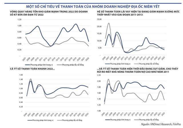 Trong báo cáo mới nhất, FiinRatings cho biết, tỷ số thanh toán hiện thời và hệ số thanh toán lãi vay của các doanh nghiệp bất động sản niêm yết đã giảm xuống mức thấp nhất giai đoạn 2011-2013, cho thấy rủi ro mất khả năng thanh toán đã hiện hữu.