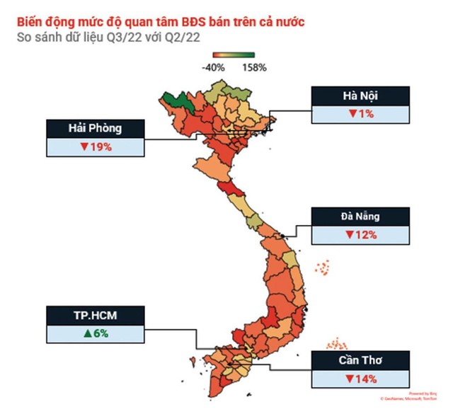 Trong quý III/2022, nhiều địa phương phía Bắc chứng kiến nhu cầu tìm mua bất động sản giảm so với quý trước.