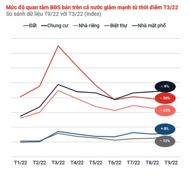 Rõ ràng, không nhiều doanh nghiệp địa ốc dám “khoe” tham vọng ở thời điểm này, khi mà thị trường còn tiềm ẩn nhiều yếu tố bất định. Dữ liệu mới nhất của Batdongsan.com.vn cho biết, mức độ quan tâm đến bất động sản trên cả nước tiếp tục giảm mạnh trong quý III/2022. Nhiều địa phương chứng kiến nhu cầu tìm mua bất động sản trong quý III/2022 giảm so với quý trước, đơn cử Hải Phòng giảm 19%, Đà Nẵng giảm 12%, Cần Thơ giảm 14%...
