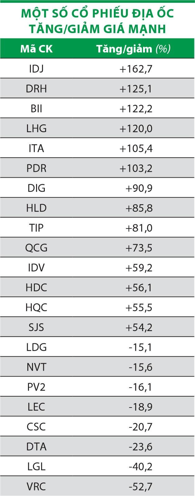 Trong nhóm bất động sản, ngoài HDG, nhiều cổ phiếu có diễn biến tăng giá như NTL, DXG, nhất là cổ phiếu bất động sản khu công nghiệp gồm D2D, NTC, SIP, GVR, TIP, SZC… Ngược lại, không ít cổ phiếu khác có giá giảm, dù thị trường chứng khoán tăng điểm.