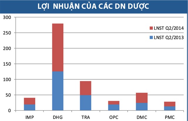 CTCP Dược Hậu Giang (DHG) đạt 976 tỷ đồng doanh thu thuần trong quý II/2014, tăng 25,2% so với cùng kỳ năm 2013; lợi nhuận sau thuế cổ đông công ty mẹ đạt 153,6 tỷ đồng. Lũy kế 6 tháng đầu năm, DHG đạt 1.704 tỷ đồng doanh thu, lãi ròng 272 tỷ đồng, tăng 12,4% so với 6 tháng đầu năm 2013. Trong quý II/2014, chi phí bán hàng của DHG tăng mạnh từ 158 tỷ đồng lên 251 tỷ đồng do Công ty đẩy mạnh các hoạt động quảng cáo, truyền thông nhằm giới thiệu sản phẩm đến tay người tiêu dùng.