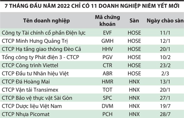 Từ đầu năm 2022 đến nay, chỉ có 6 doanh nghiệp chào sàn HOSE và 5 doanh nghiệp chào sàn HNX.