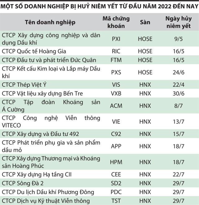 Niêm yết trên sàn chứng khoán là mục tiêu của nhiều doanh nghiệp khi muốn có thêm một kênh huy động vốn, tăng tính kết nối với cổ đông, tạo thanh khoản cho cổ phiếu và gia tăng giá trị doanh nghiệp. Tuy nhiên, nếu không đáp ứng được tiêu chí chất lượng hoạt động và các ràng buộc về điều kiện niêm yết thì việc doanh nghiệp phải rời sàn là điều tất yếu.