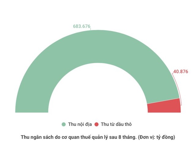 Một phần nguyên nhân do giá dầu thô tăng khá, bình quân 8 tháng ước đạt khoảng 73 USD/thùng, nên thu ngân sách từ dầu thô đã đạt 113,9% dự toán, tăng 35,1% so cùng kỳ.