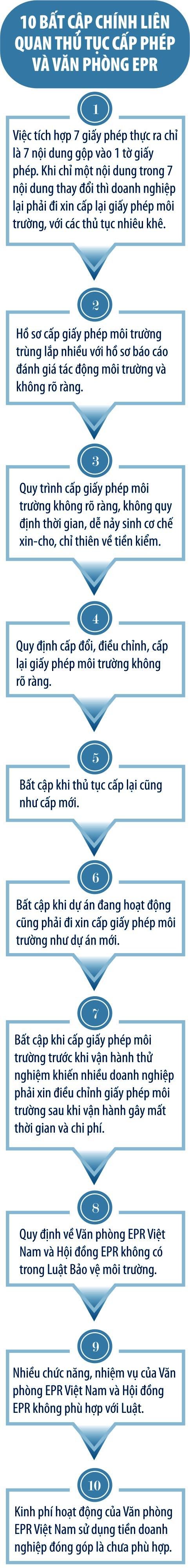 Điều này dẫn tới việc, khi chỉ một nội dung trong 7 nội dung thay đổi, thì doanh nghiệp như “xóa cờ chơi lại”, phải đi xin cấp lại giấy phép môi trường với các thủ tục nhiêu khê, không chỉ khốn khổ cho họ, mà còn nguy cơ lớn gây tăng thủ tục hành chính.