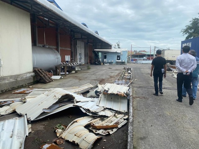 Tại Công ty cổ phần Xuất nhập khẩu thủy sản Quảng Ninh, ông Đỗ Quang Sáng, Chủ tịch HĐQT kiêm Tổng giám đốc cho biết, xưởng sản xuất của công ty bị bay một phần mái tôn, xưởng đá bị bay hoàn toàn mái tôn, bị lật 400-500 m2 mái tôn.