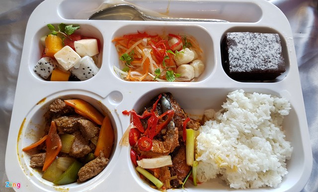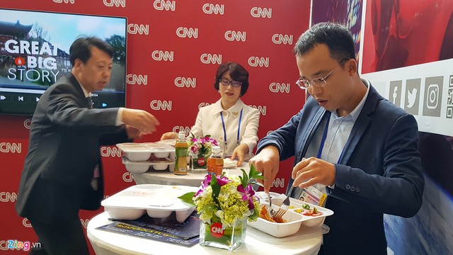 Trưa 10/11, hàng nghìn đại biểu tham dự APEC CEO Summit tại Trung tâm hội nghị Ariyana được thưởng thức những suất cơm hộp với đầy đủ các món rau thịt, salad và tráng miệng.