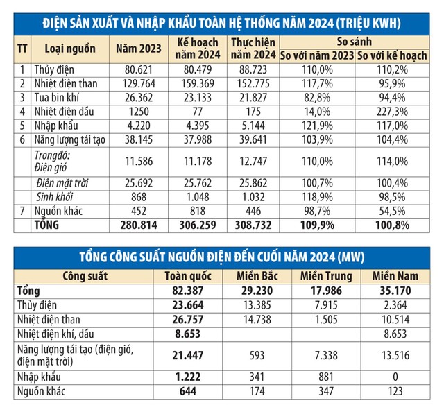 Phía Tập đoàn Điện lực Việt Nam (EVN) cũng được yêu cầu đẩy nhanh tiến độ để đưa các dự án nguồn điện đang triển khai vào sớm so với kế hoạch từ 6 tháng trở lên. Các dự án nguồn khác mà EVN đang triển khai có hợp tác với nước ngoài, nếu nhà đầu tư nước ngoài không thực hiện được, thì EVN rà soát lại năng lực của mình và đề xuất trong tháng 1/2025 để Bộ Công thương báo cáo Chính phủ xem xét giao EVN đầu tư theo quy định về trường hợp đặc biệt trong Luật Điện lực, có hiệu lực từ ngày 1/2/2025.