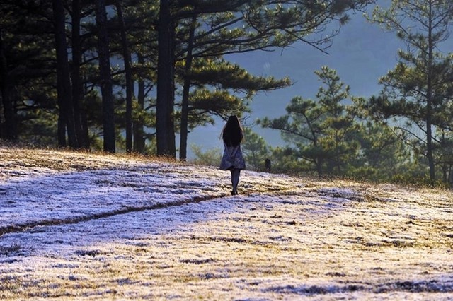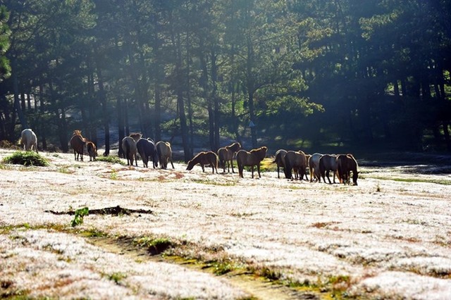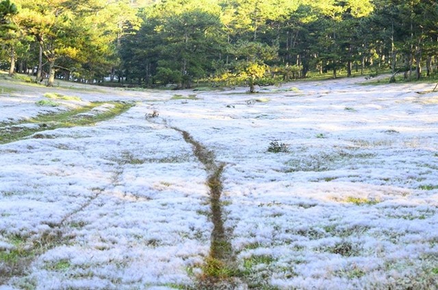 Đồi cỏ hồng Đà Lạt biến thành cỏ tuyết sau một đêm