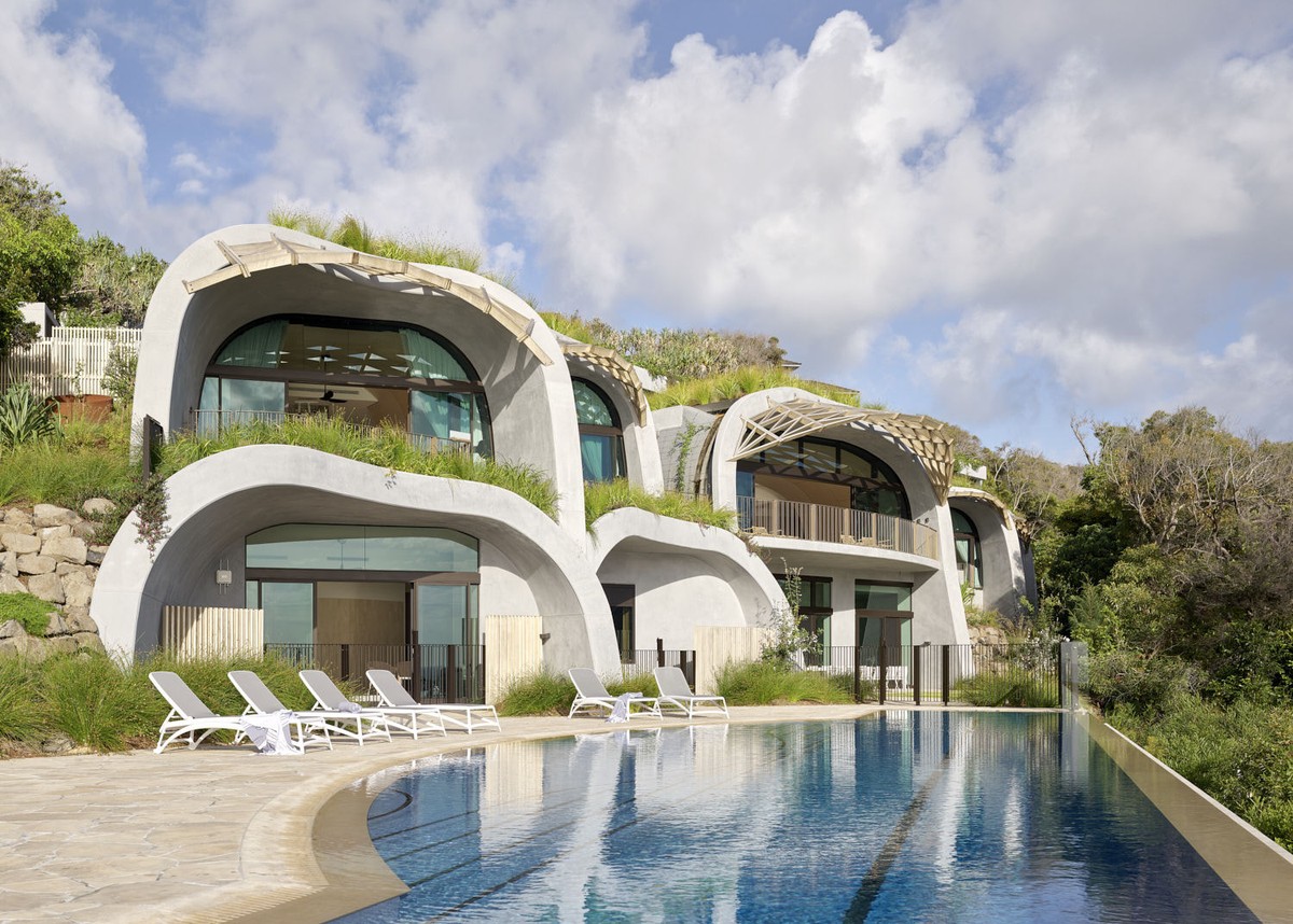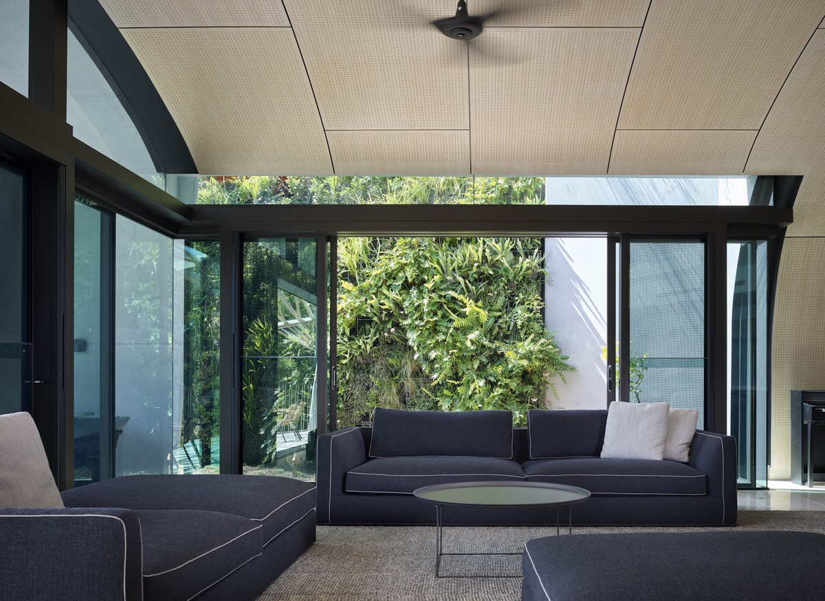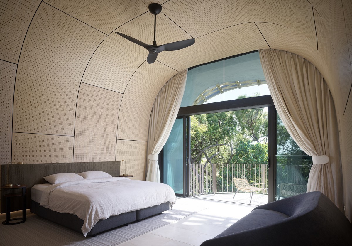 Phần vòm tròn cao cùng các cột trụ ẩn giúp tối ưu hoá không gian nội thất và mở rộng tầm nhìn bằng các cửa kính lớn.