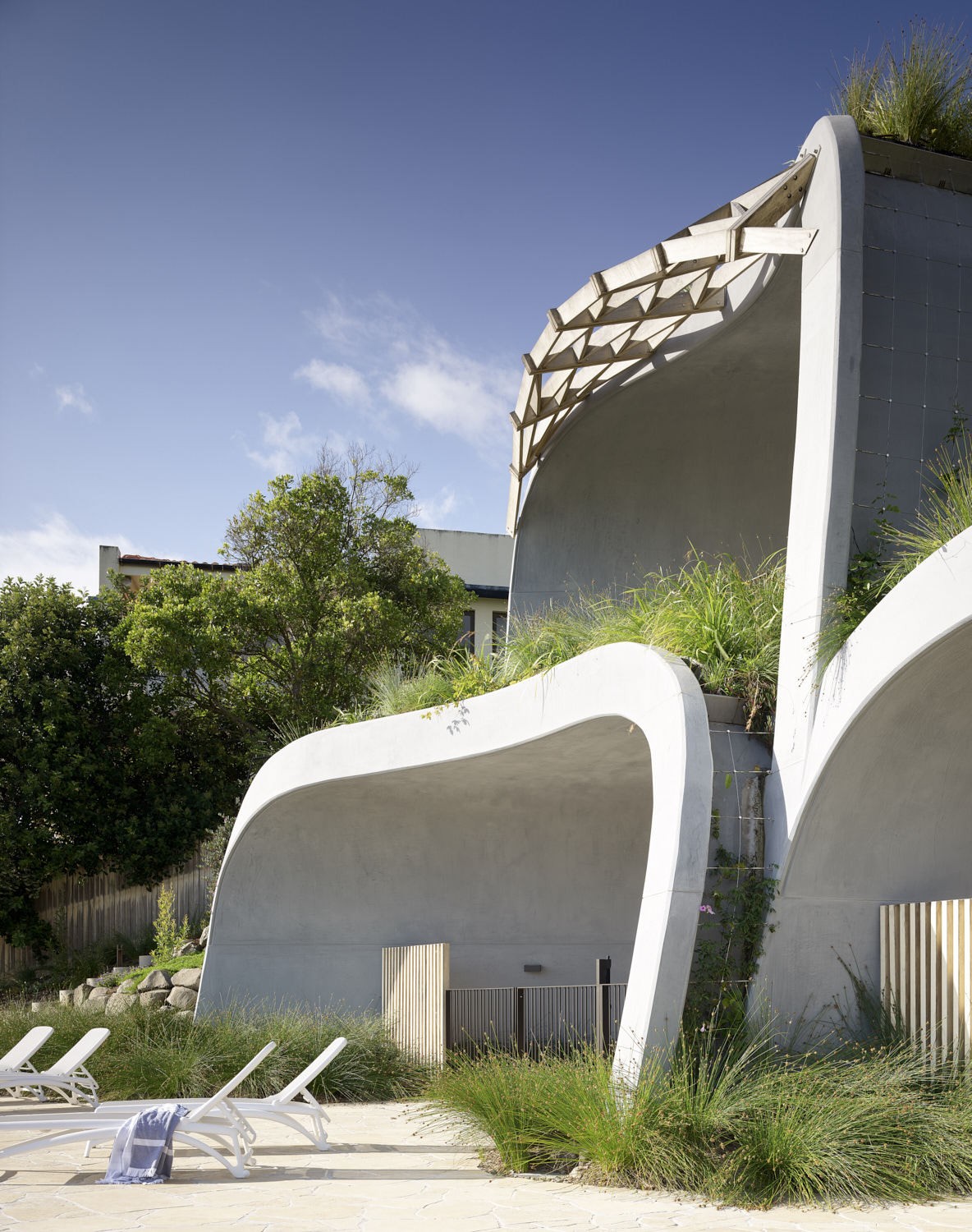 Nếu như chủ nhân căn nhà thoải mái tận hưởng góc nhìn hoàn hảo về phía biển, thì từ phía công viên Noosa nhìn lại, căn nhà hoàn toàn nguỵ trang vào khung cảnh xung quanh với những vườn cây xanh mát tại các bề mặt bên ngoài, cũng như ở phần mái, nhờ vậy, tính riêng tư luôn được tôn trọng và giữ vững.