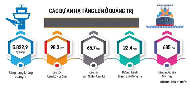 Thời gian qua, UBND tỉnh Quảng Trị đã đốc thúc, hỗ trợ, chỉ đạo các sở, ban, ngành tạo điều kiện cho các nhà đầu tư sớm hoàn thiện các dự án giao thông trọng điểm. Cùng với đó, Quảng Trị tiếp tục đầu tư một số hạng mục công trình giao thông quan trọng kết nối Khu kinh tế Đông Nam Quảng Trị với Hành lang kinh tế Đông - Tây, Khu kinh tế - thương mại Lao Bảo, tam giác du lịch biển Cửa Việt - Cửa Tùng - Cồn Cỏ. Nhiều công trình giao thông quan trọng được cải tạo, nâng cấp, đầu tư xây dựng mới, như cầu sông Hiếu, cầu thứ 2 qua sông Thạch Hãn, cầu nối Mò Ó - Triệu Nguyên, đường cao tốc Cam Lộ - La Sơn (đoạn qua địa bàn tỉnh), đường tránh TP. Đông Hà về phía Đông, đường Sa Trầm - Palin, trục đường trung tâm Khu kinh tế Đông Nam Quảng Trị… Hạ tầng giao thông từng bước hoàn thiện đã và đang tạo điều kiện thuận lợi để Quảng Trị đẩy mạnh liên kết, tạo bước đột phá.