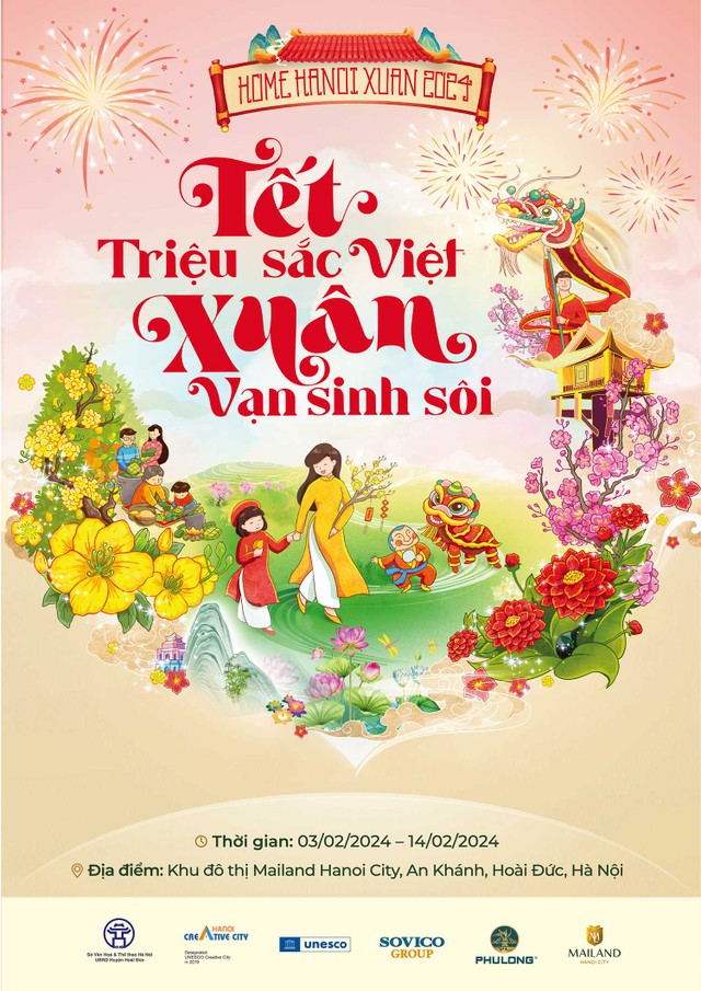 Tết nguyên đán Giáp Thìn, đường hoa Home Hanoi Xuan 2024 với chủ đề “Tết triệu sắc Việt, Xuân vạn sinh sôi" sẽ ngập tràn muôn sắc hoa từ mọi miền Tổ quốc cùng các hoạt động văn hóa, vui chơi, giải trí đậm đà bản sắc văn hóa dân tộc.