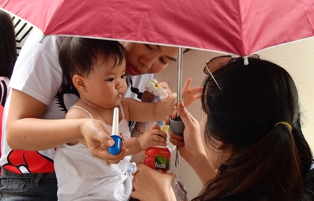 Nhiều gia đình cho trẻ nhỏ đi cùng.