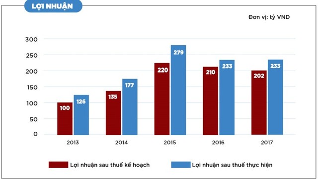 Năm 2017, doanh thu thuần đạt 1.774 tỷ đồng, hoàn thành 96% kế hoạch, lợi nhuận sau thuế đạt 233 tỷ đồng, hoàn thành 116% kế hoạch, cổ tức được chia 15%, đánh dấu 5 năm liên tiếp vượt kế hoạch lợi nhuận đề ra (2013 - 2017) với tổng lợi nhuận sau thuế là 1.048 tỷ đồng.