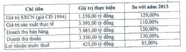 Cụ thể, trong năm 2014, DRC dự kiến đạt 1.350 tỷ đồng giá trị sản xuất công nghiệp, tăng 29% so với 2013, doanh thu thuần đạt 3.350 tỷ đồng, tăng 20% và lợi nhuận trước thuế mục tiêu là 425 tỷ đồng, chỉ bằng 85% so với thực hiện 2013.