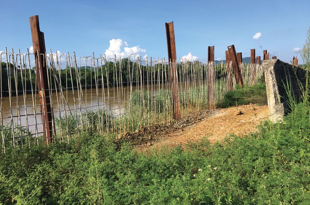 Hiện tại, theo quan sát thực tế của phóng viên Báo Đầu tư Bất động sản, tuyến đê kè đứng do Tập đoàn Phúc Lộc và Cienco 8 đã “làm mẫu” đang thi công dang dở, cây dại mọc um tùm, máy móc nằm bất động. Đặc biệt, các cốt sắt để lâu ngày đã bắt đầu han rỉ.