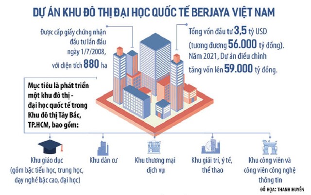 Tưởng chừng Dự án Khu đô thị Đại học quốc tế Berjaya 3,5 tỷ USD tại huyện Hóc Môn, TP.HCM sẽ “hồi sinh” sau khi Thủ tướng Chính phủ ban hành Quyết định số 2197/QĐ-TTg điều chỉnh chủ trương đầu tư Dự án vào cuối tháng 12/2021. Tuy nhiên, do không có thông tin cụ thể về tiến độ dự án trong giấy phép điều chỉnh chủ trương đầu tư, nên nhà đầu tư gặp nhiều vướng mắc trong việc triển khai các bước tiếp theo.