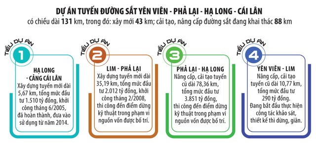 Cần phải nói thêm rằng, Dự án Tuyến đường sắt Yên Viên - Phả Lại - Hạ Long - Cái Lân được Thủ tướng Chính phủ cho phép đầu tư tại Văn bản số 75/CP-CN, ngày 9/1/2004 bằng nguồn vốn trái phiếu Chính phủ. Công trình có tổng chiều dài 131 km, điểm đầu tại ga Yên Viên, điểm cuối tại cảng Cái Lân với tổng mức đầu tư 7.663 tỷ đồng.