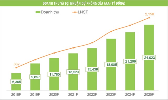 Theo kế hoạch tăng vốn của AAA thì sau khi tăng vốn, các chỉ tiêu sinh lời trong năm 2018 được đảm bảo ở mức EPS đạt 2.590 đồng, ROE và ROA đạt mức 16% và 10%. Do các dự án đang trong giai đoạn đầu triển khai nên chưa mang lại doanh thu lớn. Tuy nhiên, trong giai đoạn tiếp theo, khi các dự án này đi vào ổn định, các chỉ tiêu lợi nhuận của AAA sẽ tăng lên đáng kể do các dự án mới đều có biên lợi nhuận ở mức cao khoảng 10-17%, cao hơn nhiều so với biên lợi nhuận của sản phẩm túi nilon hiện tại.