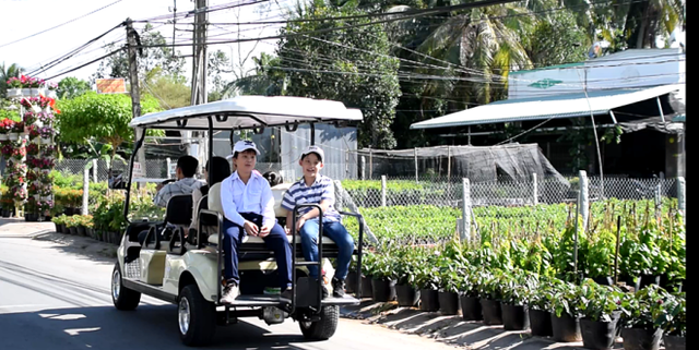 Năm nay, dịch vụ xe điện, hướng dẫn viên miễn phí trên đường hoa được triển khai ở Tân Quy Đông (Sa Đéc, Đồng Tháp), giúp du khách tham quan thuận lợi hơn.
