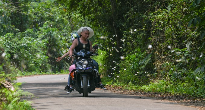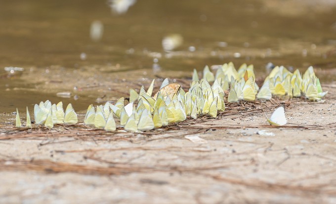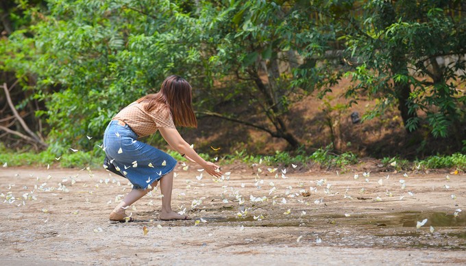 Ngay từ cổng vào, du khách có thể bắt gặp hàng trăm con bướm tụ lại cùng nhau trên mặt đất. Mỗi khi có người đi qua hoặc xua nhẹ tay là cả đàn tung cánh bay lên.