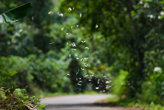 Những đàn bướm chủ yếu bay dọc tuyến đường bộ trong vườn quốc gia. Theo một kiểm lâm viên tại Cúc Phương, ban ngày đàn bướm sẽ bay ra khỏi rừng và trở về vào buổi chiều.
