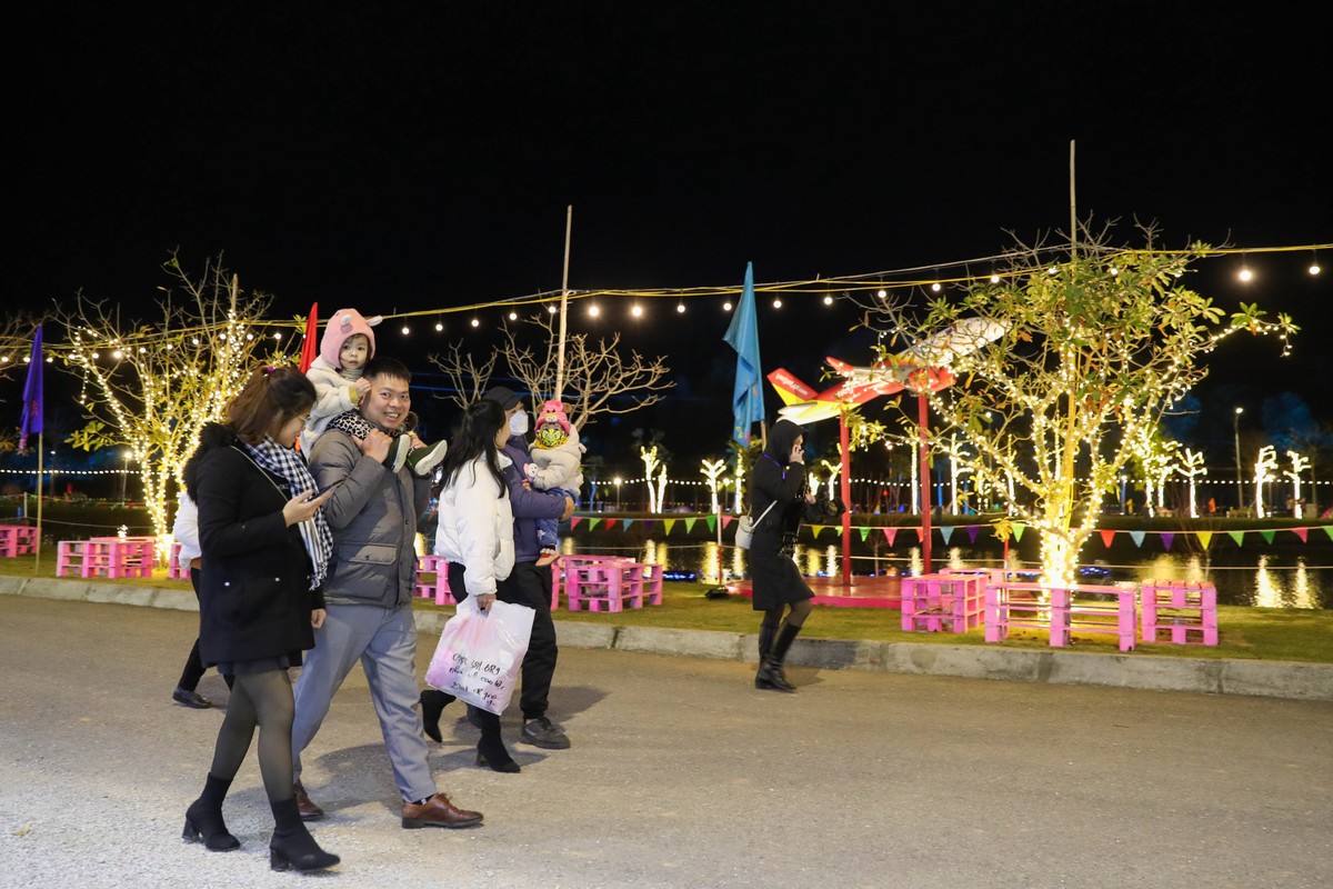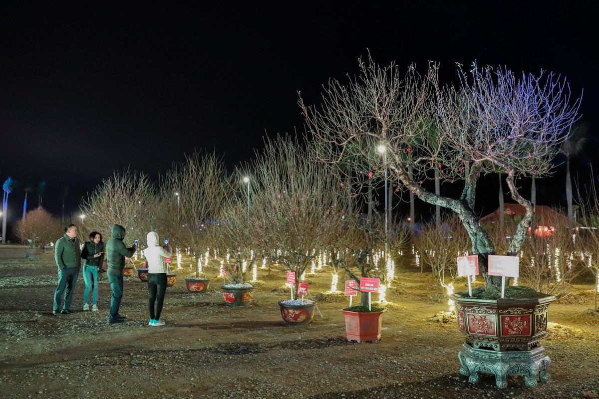 Không khí sự kiện trở nên nhộn nhịp hơn vào buổi tối với tâm điểm là lễ khai mạc với nhiều hoạt động văn hóa, văn nghệ độc đáo và hấp dẫn. Tại đây, những gốc đào được “phát sáng” bằng hệ thống đèn, tạo nên không gian lung linh huyền ảo. Đây cũng là khu vực thu hút sự chú ý của đông đảo du khách.