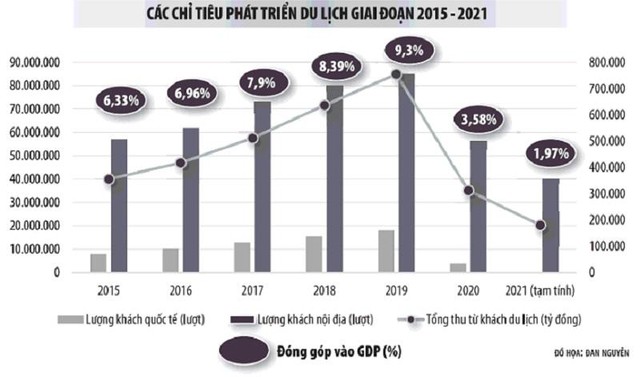 Được xác định là ngành kinh tế mũi nhọn, du lịch Việt Nam từng đóng góp trực tiếp 9,2% GDP quốc gia, đem lại doanh thu lên tới 32,8 tỷ USD và 2,5 triệu việc làm trong năm 2019.