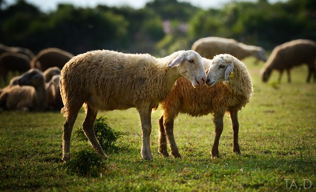 Những chú cừu nhởn nhơ gặm cỏ ở đồng cừu Ninh Thuận. Ảnh: TA.D