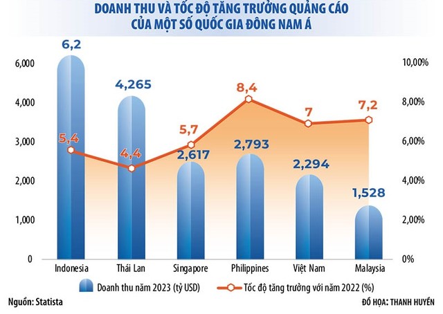 Theo số liệu của Statista, tổng doanh thu thị trường quảng cáo Việt Nam dự kiến đạt gần 2,3 tỷ USD vào năm 2023. Trong đó, phân khúc lớn nhất của thị trường là trực tuyến, đạt khoảng 1,211 tỷ USD.