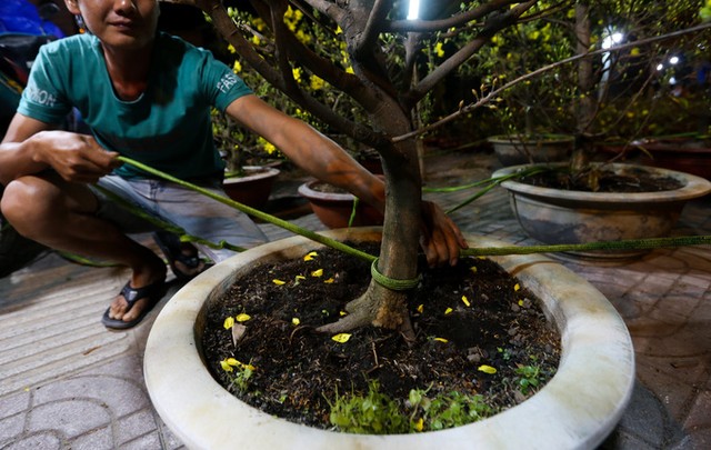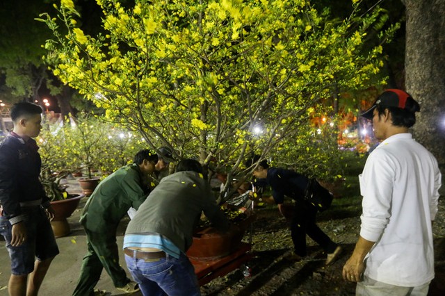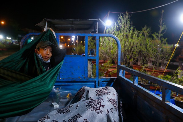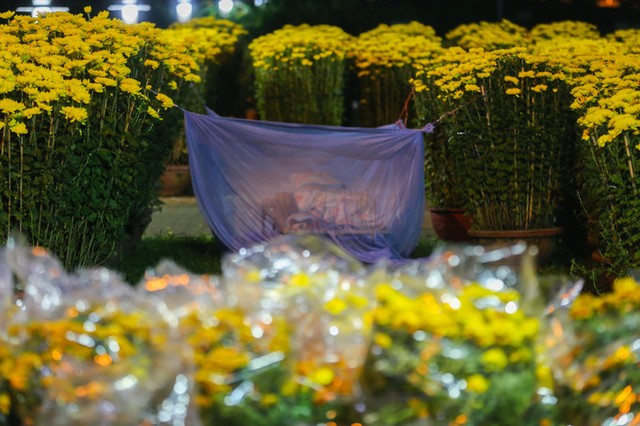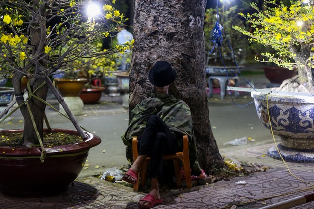 Người bán hoa phải thức trắng đêm, mang theo chăn màn bếp núc để trông hoa bày ngoài lề đường, tránh mất trộm.