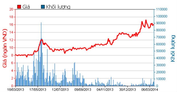Kinh doanh bết bát, nhưng cổ phiếu KDH trong 1 năm qua lại có mức tăng “khủng”. Tại thời điểm 18/3/2013, giá cổ phiếu này chỉ vào khoảng 8.000 đồng. Sau 1 năm, cổ phiếu này đứng tại mức 16.100 đồng, tức tương đương mức tăng hơn 100%. Có những thời điểm gần đây, cổ phiếu này đã tăng gần đến 18.000 đồng.