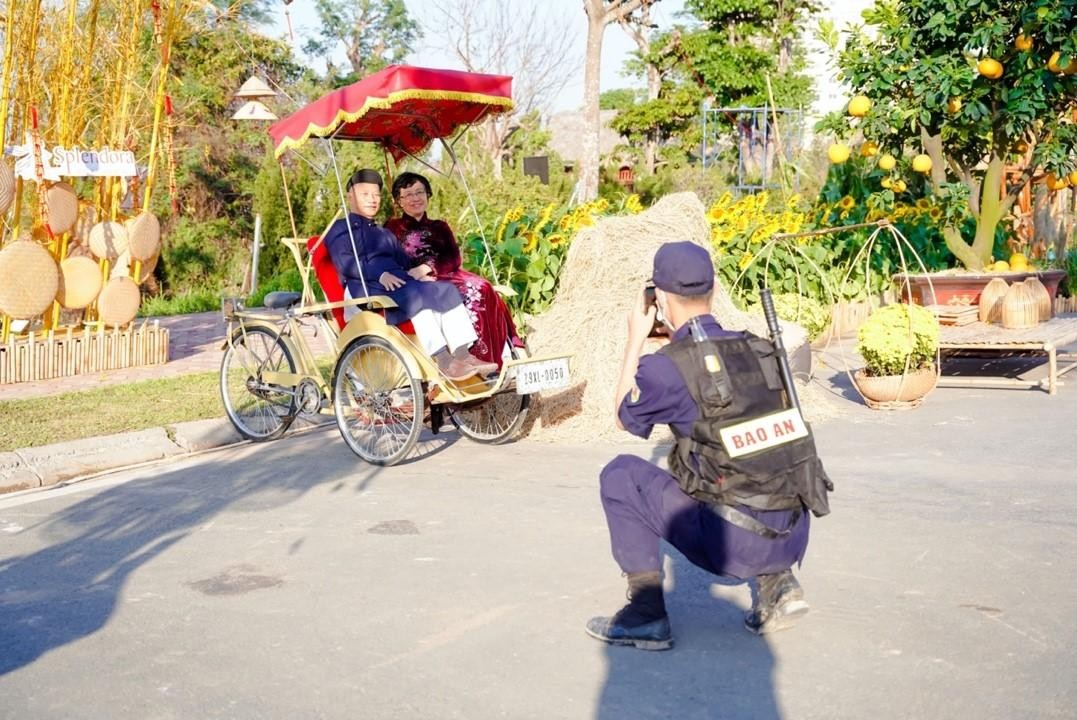 Đặt chân đến đường hoa, du khách cảm nhận không khí Xuân tràn ngập. Nhiều gia đình, nhóm bạn xúng xính trong những bộ trang phục truyền thống cùng chụp ảnh ghi lại kỷ niệm về một cái Tết vui tươi, đầy hoa cỏ mùa xuân. Thời tiết thuận lợi trong suốt những ngày Tết Âm lịch khiến hàng nghìn bông hoa đủ mọi màu sắc càng thêm tươi thắm trong từng khuôn hình.