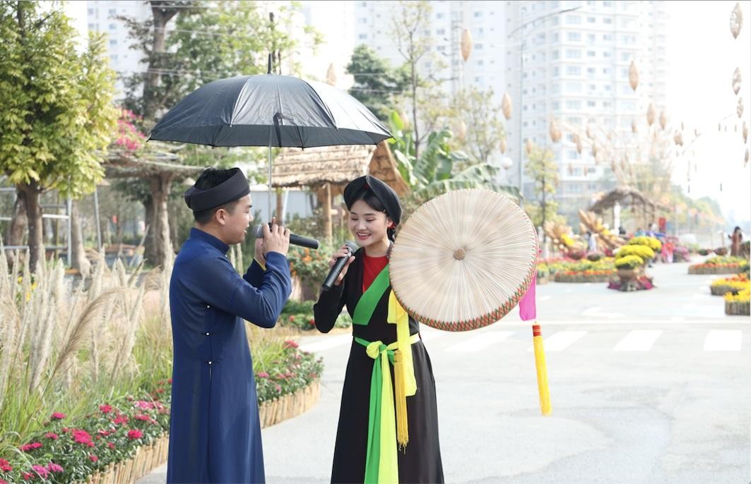 Ngoài ngắm hoa, khách tham quan được trải nghiệm hàng loạt gian hàng mang không khí Tết như các gian hàng làng nghề từ xin chữ ông Đồ, tò he, lụa Vạn Phúc, làm tranh Đông Hồ, làm Gốm Bát Tràng, nón lá Làng Chuông,… và những trò chơi dân gian đậm chất văn hóa vùng đồng bằng Bắc Bộ: ném còn, bịt mắt bắt vịt, bịt mắt đánh trống, ô ăn quan và cờ dân gian, phi tiêu bóng bay, múa rối nước, hát Quan họ.