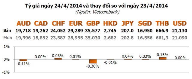 Các ngoại tệ khác, hầu hết đều thay đổi không đáng kể, ngoại trừ GBP giảm 0,3%.