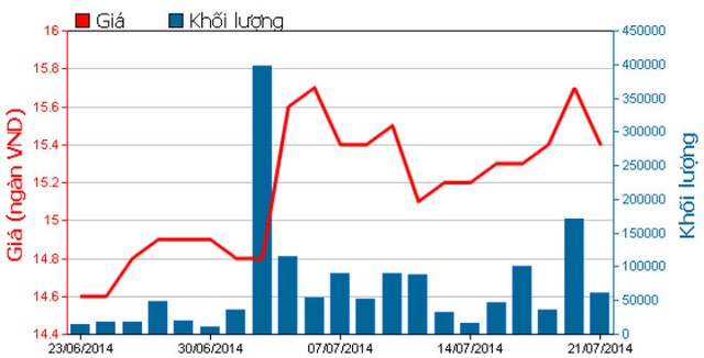 Đóng cửa phiên 21/7, cổ phiếu DXG giảm 300 đồng (-1,9%) xuống 15.400 đồng/CP và khớp được hơn 616.000 đơn vị.