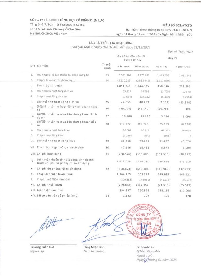 Kết thúc năm 2025, EVF không chỉ vượt kế hoạch lợi nhuận mà còn củng cố nền tảng tăng trưởng bền vững. Sự cân bằng giữa tín dụng, đầu tư và quản trị chi phí đang giúp EVF khẳng định vị thế trong nhóm các công ty tài chính có hiệu quả hoạt động nổi bật trên thị trường.